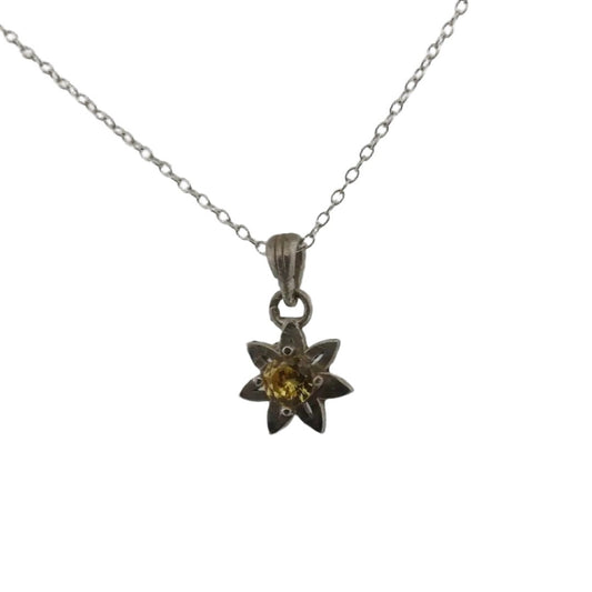Sterling Silver Daisy Jewellery Pendant with Yellow Sapphire