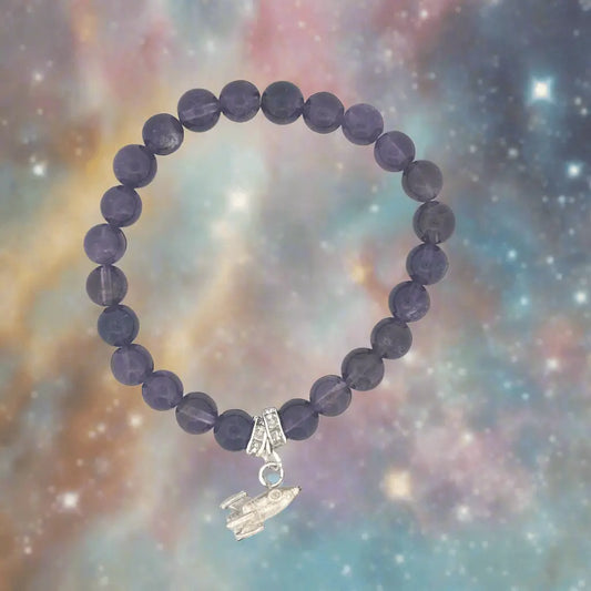 Amethyst Beaded Bracelet with Sterling Silver Rocket Charm - Cosmic Dreams Collection
